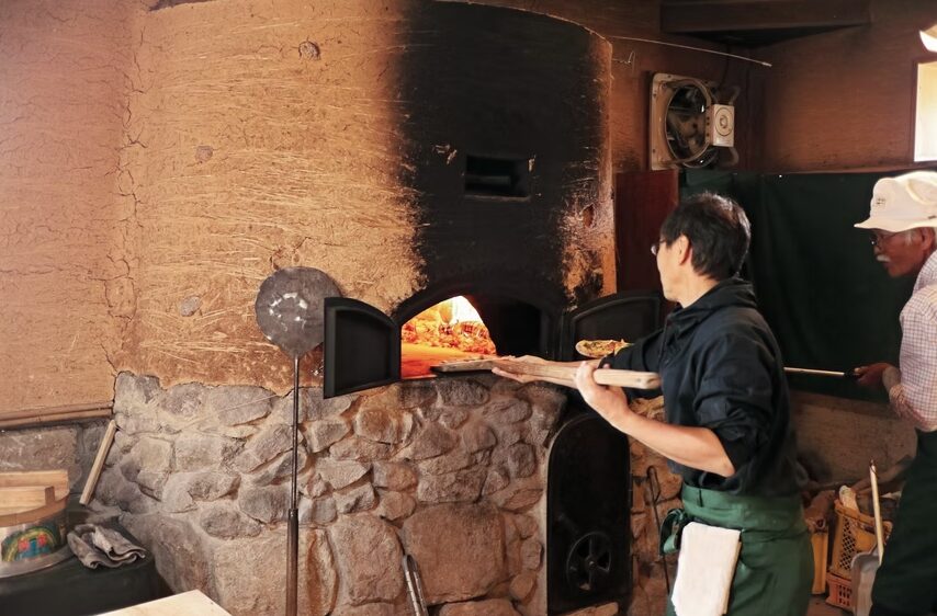 石窯マイスターがピザ焼きの指導を行います。